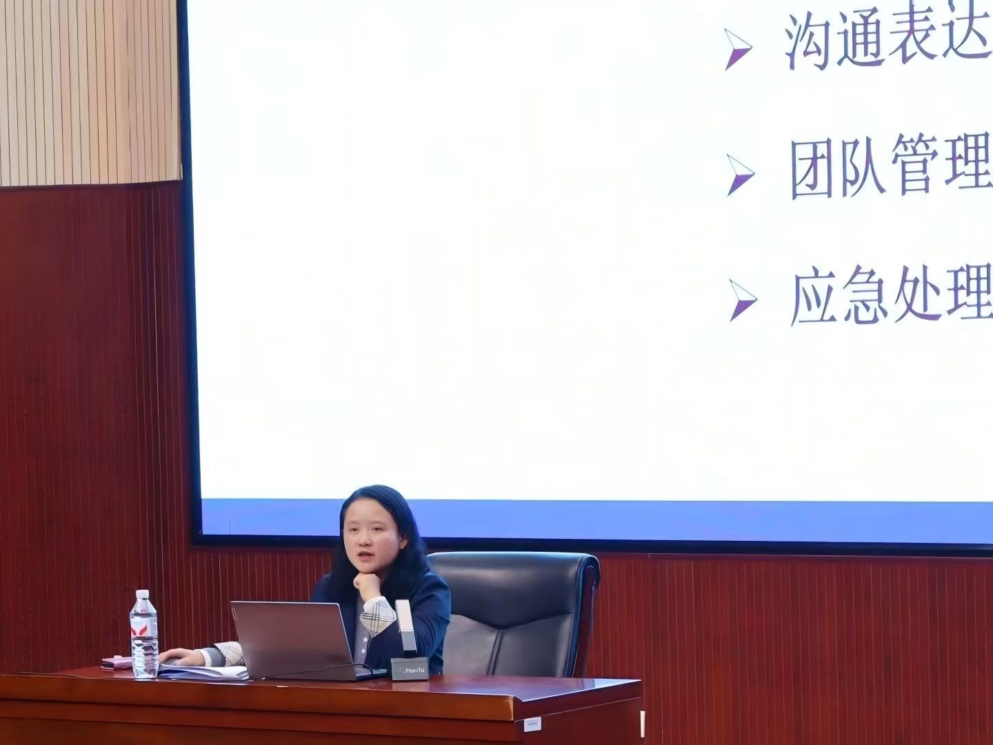 培训会上,王老师围绕学生干部的角色认知、素质与能力培养与同学们深入交流。她强调,学生干部是连接学院与同学的桥梁纽带,要平衡服务与管理双重职责,牢记“服务同学、服务学院、服务学校”的初心使命。学生干部应着力提升思想素质、道德修养与实践创新能力,不断夯实基础技能,增强沟通协调、组织管理与心理调适能力。