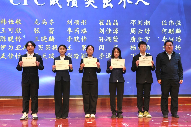 会计系主任于国旺为获评学习成绩突出个人、四六级成绩突出个人、CPC成绩先进个人代表颁奖。
