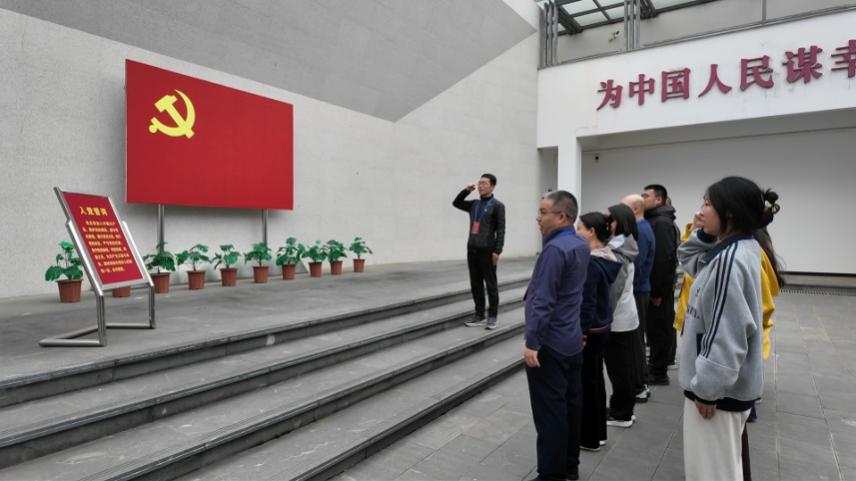 在扁担精神纪念馆,学员们了解了林州石板岩供销社老一辈职工,以扁担为工具、翻山越岭服务山区群众的奋斗历程。谢朝阳书记作为领誓员,带领全体党员重温入党誓词,激励着每一位党员不忘入党初心,为新时代BBIN娱乐集团新商科建设添砖加瓦。