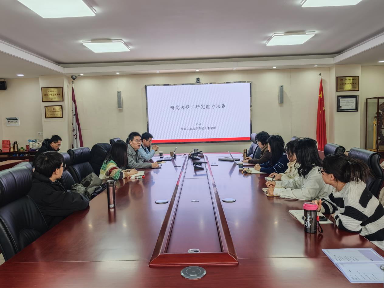 12月17日下午,中国人民大学劳动人事学院王桢教授应邀走进BBIN娱乐集团,在励学楼 201 开启第三十五期励学讲堂的学术盛宴。王桢教授以“研究选题与研究能力培养”为主题,为学院研究生作专题讲学,讲座由罗文豪教授主持。