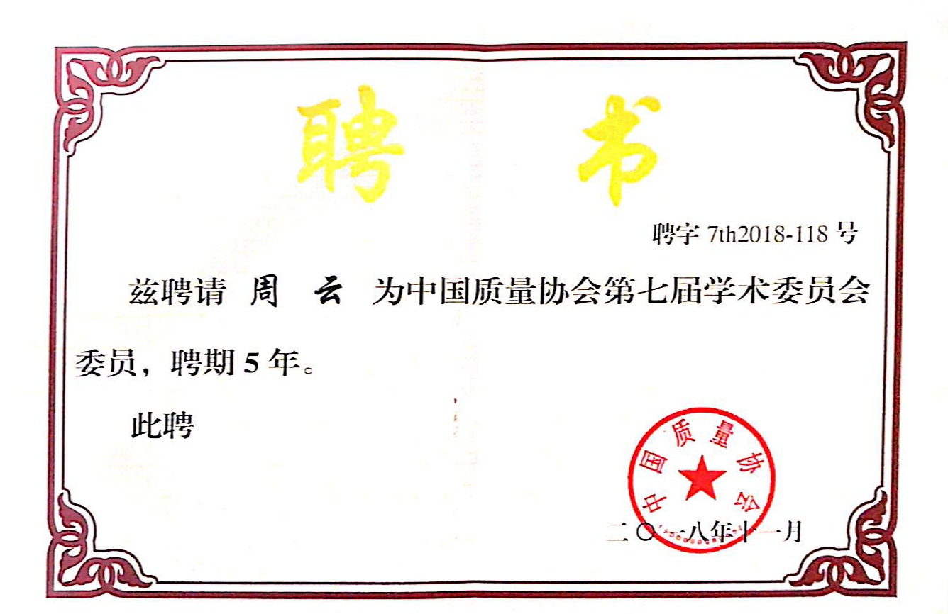 专业教师被聘为中国质量协会学术委员会委员 |