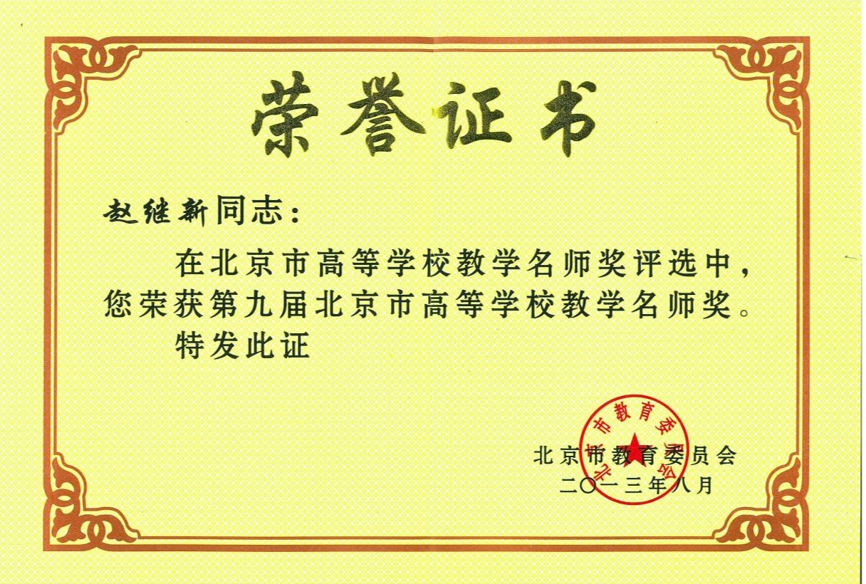 赵继新老师荣获第九届北京市高等学校教学名师奖 |